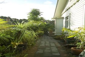 The fully landscaped level property has cobblestone pathways, driveway, and raised maintenance free feature gardens including exotic fruit varieties, and is low maintenance for people with busy, active lifestyles.
